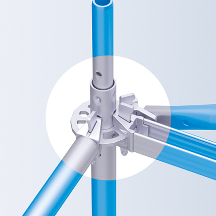 Nos échafaudages multidirectionnels s’adaptent à toutes les configurations et garantissent la même sécurité, la même robustesse et la même simplicité d’utilisation. Nous avons conçu un système où chaque rosace est soudée tous les 50 cm et verrouillée par clavette. Cela permet un assemblage rapide, polyvalent et sûr, avec un minimum d’effort pour vos équipes.